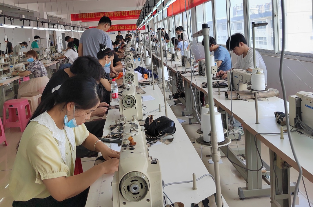 学会一种技能,致富一个家庭在淮滨临港国际服装城阳光(河南)服饰培训车间里,100...