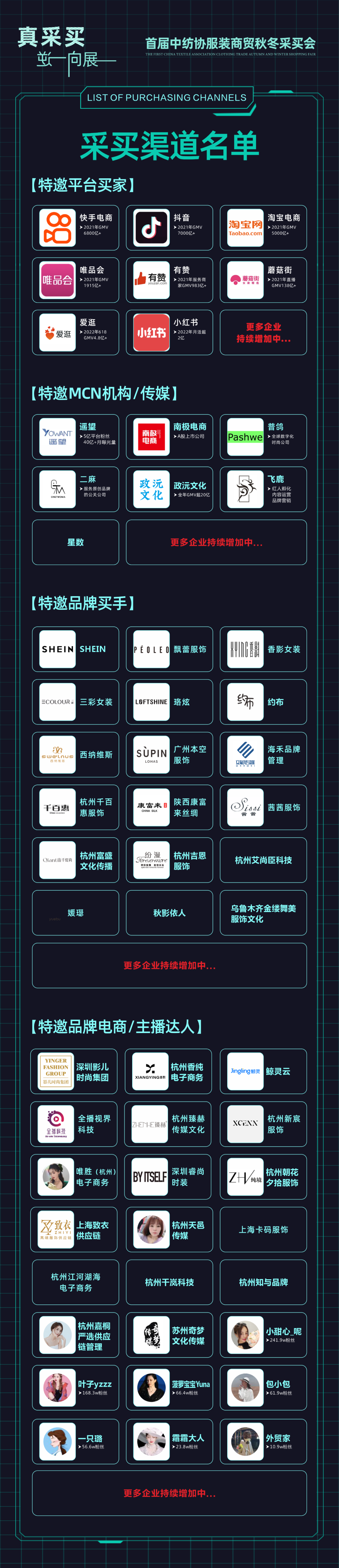 服装品牌公司、连锁企业、买手集合店、电商品牌、主播达人、社群团购、私域平台全部携真实采买需求与订单到位。