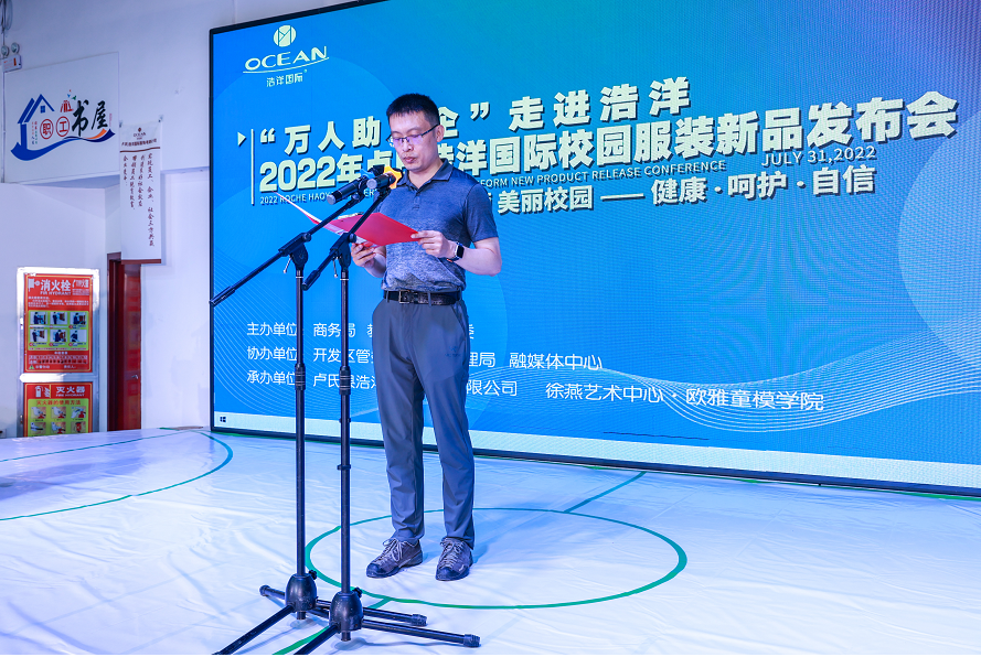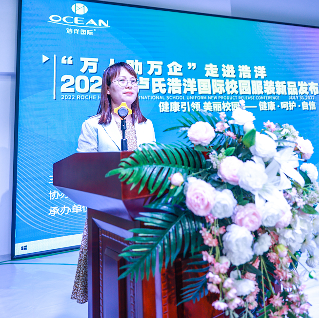 7月31日,“万人助万企”走进浩洋暨2022年卢氏浩洋国际校园服装新品发布会在浩洋服饰六楼大礼堂隆重举行。