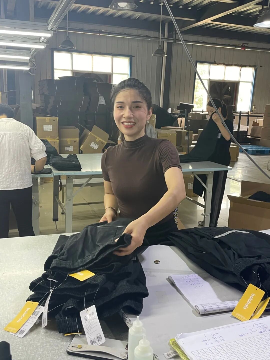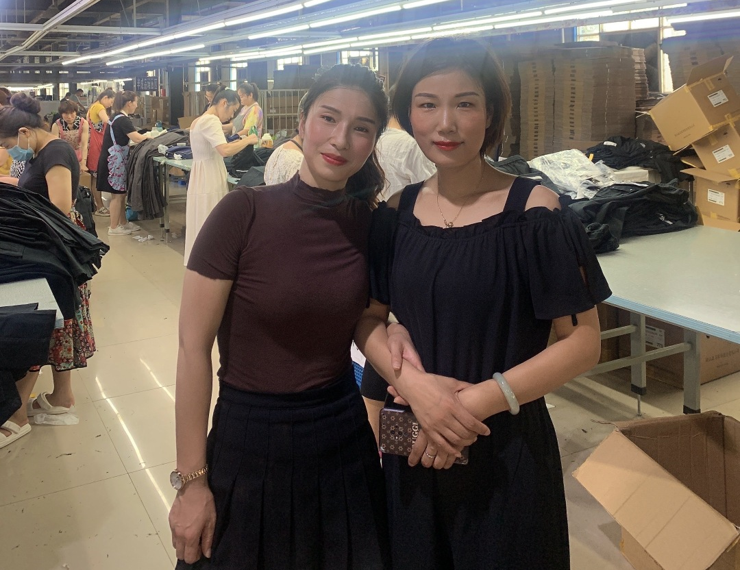 “田艳勤是我小姑子,三十多岁,跟着我在这里一起工作”,顺着李慧的眼神望去,我们看见了一位年轻漂亮的巧媳妇,身材样貌俱佳,俨然是车间里的一朵花。“我是跟着嫂子到的庄吉,私下里我们关系很好,一起吃饭、逛街,但工作上,她对车间所有姐妹一视同仁,严格要求,是一位公私分明的好组长。”田艳勤说道。