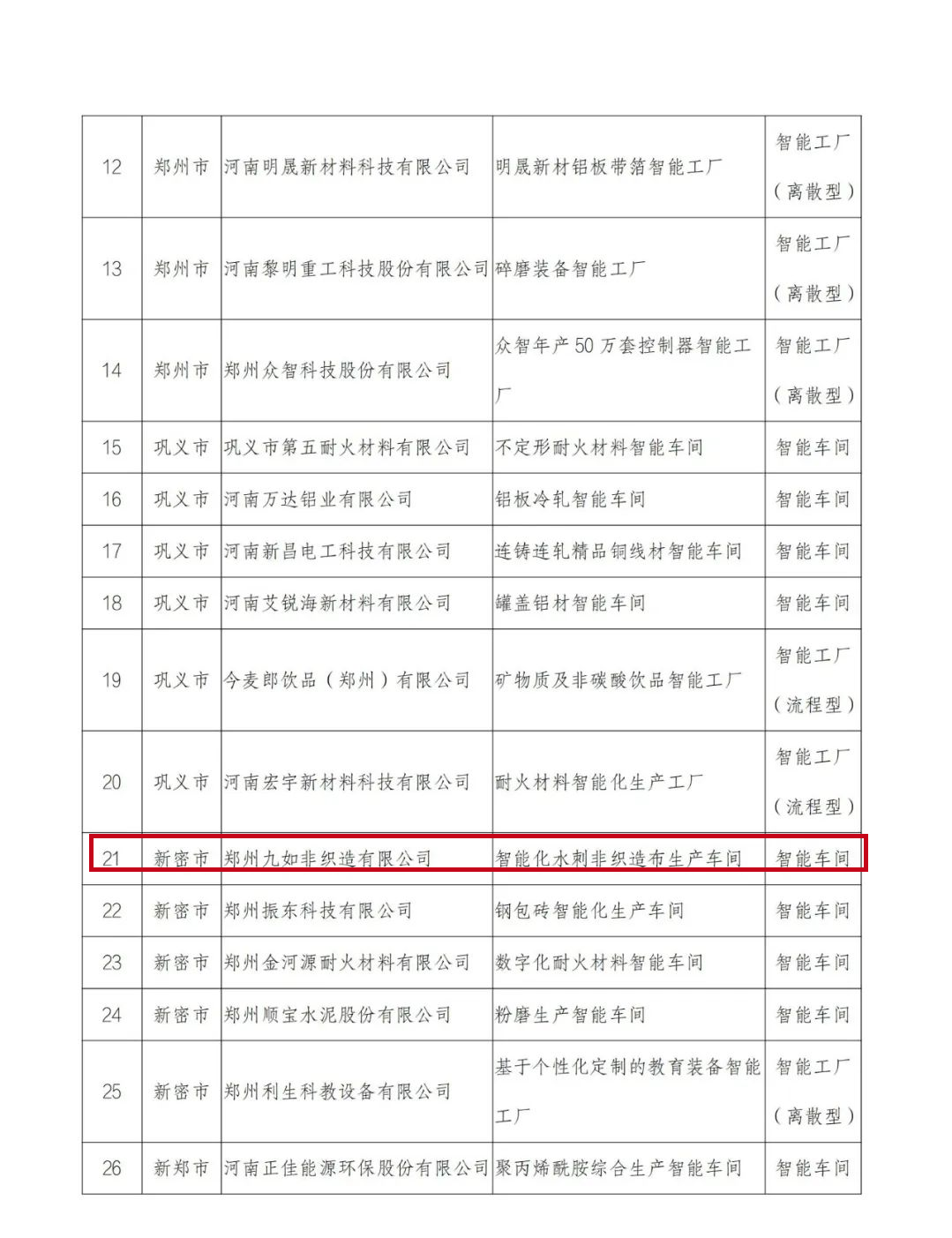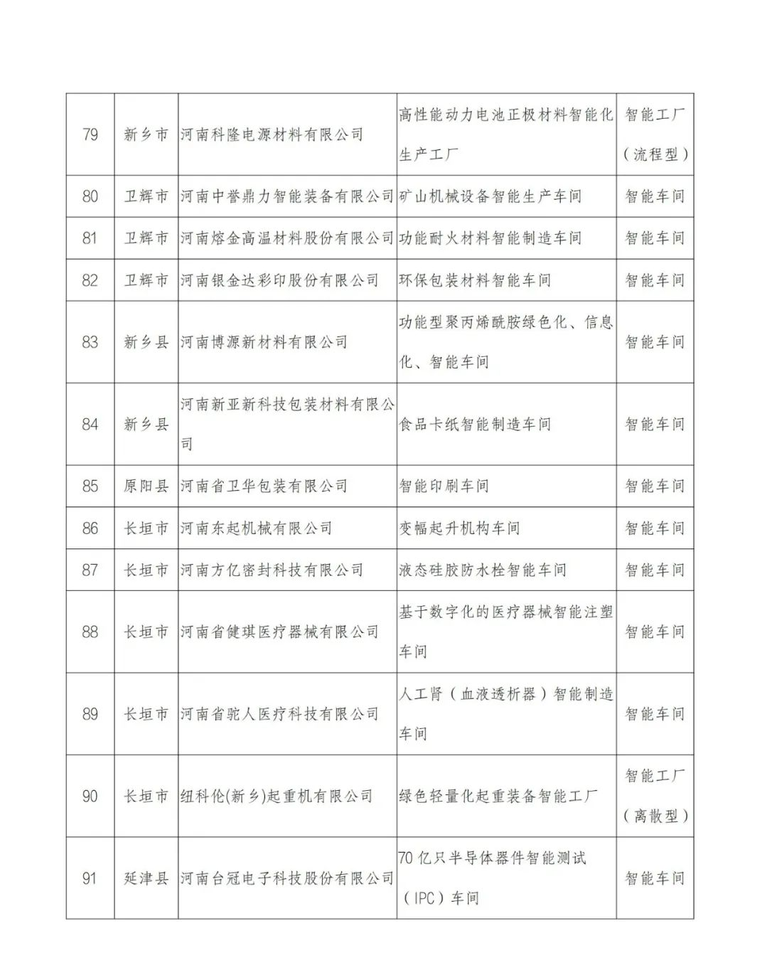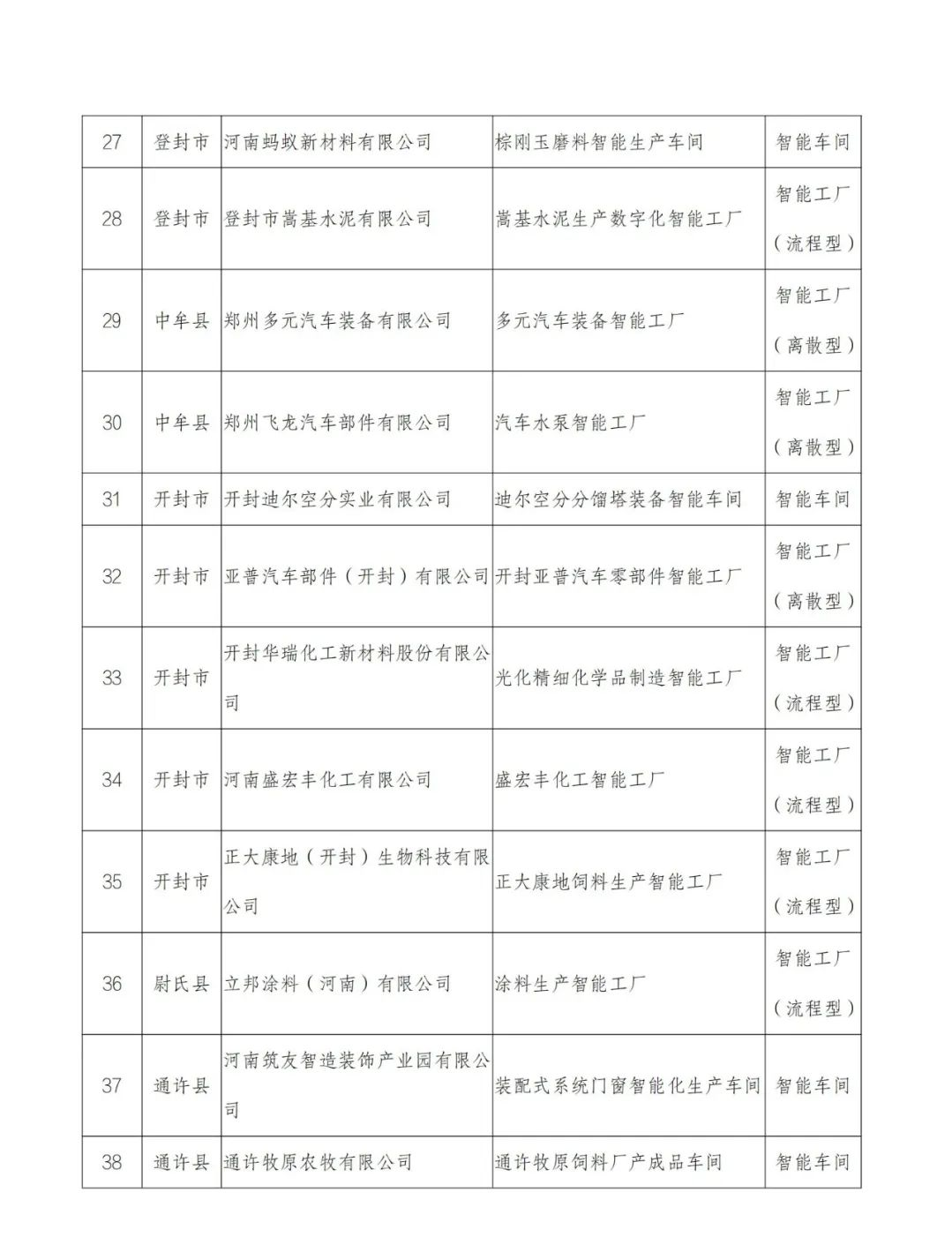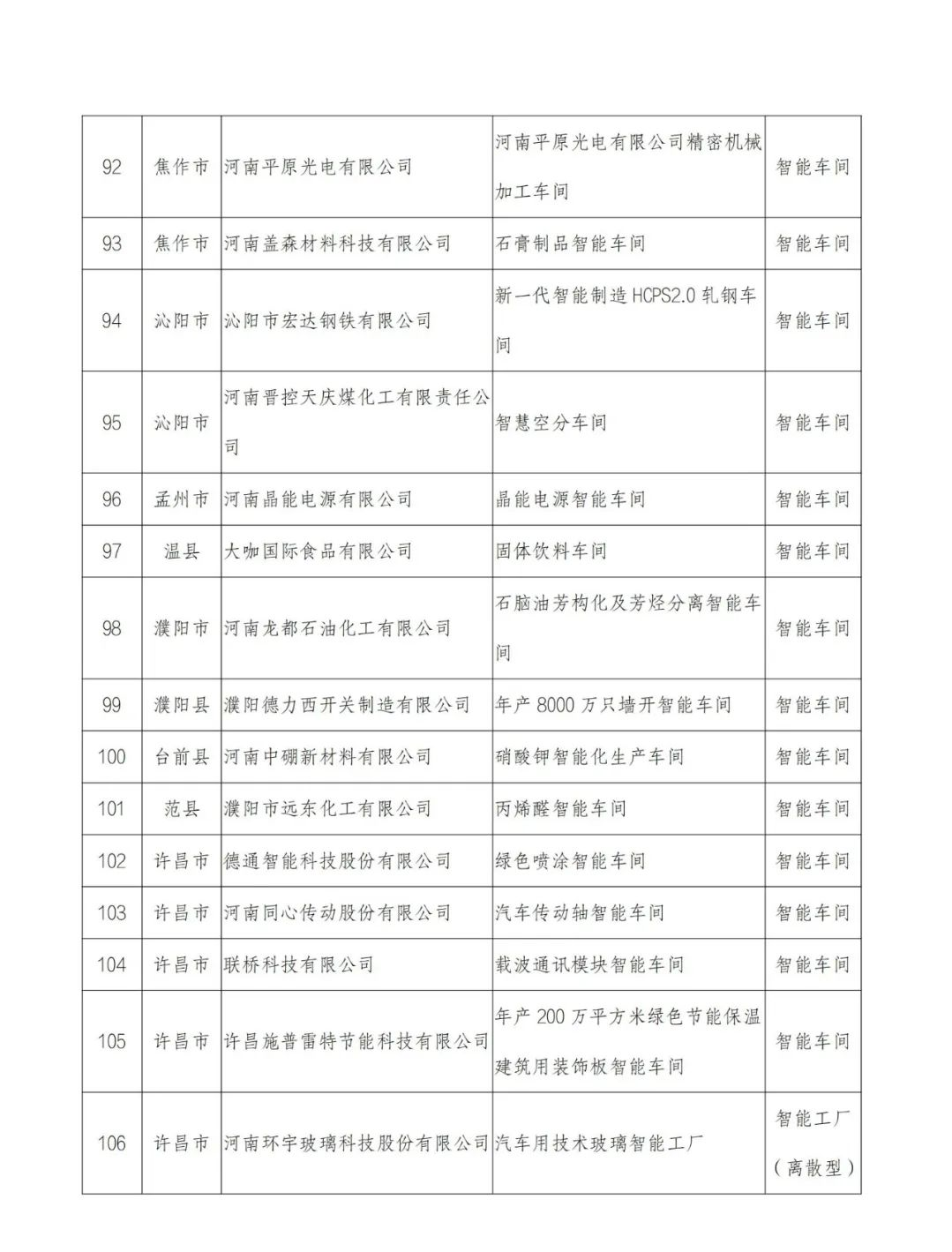 附件:2022年河南省智能车间智能工厂拟确定名单