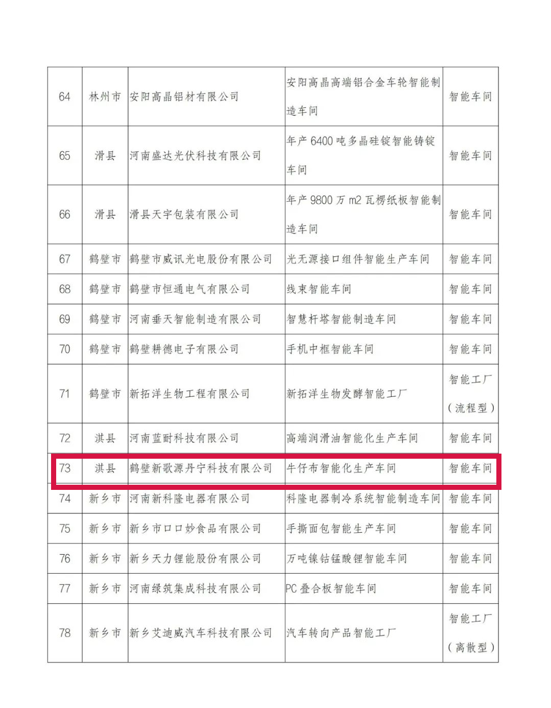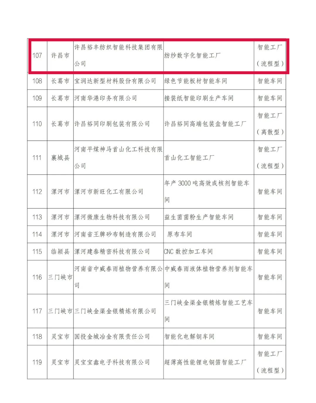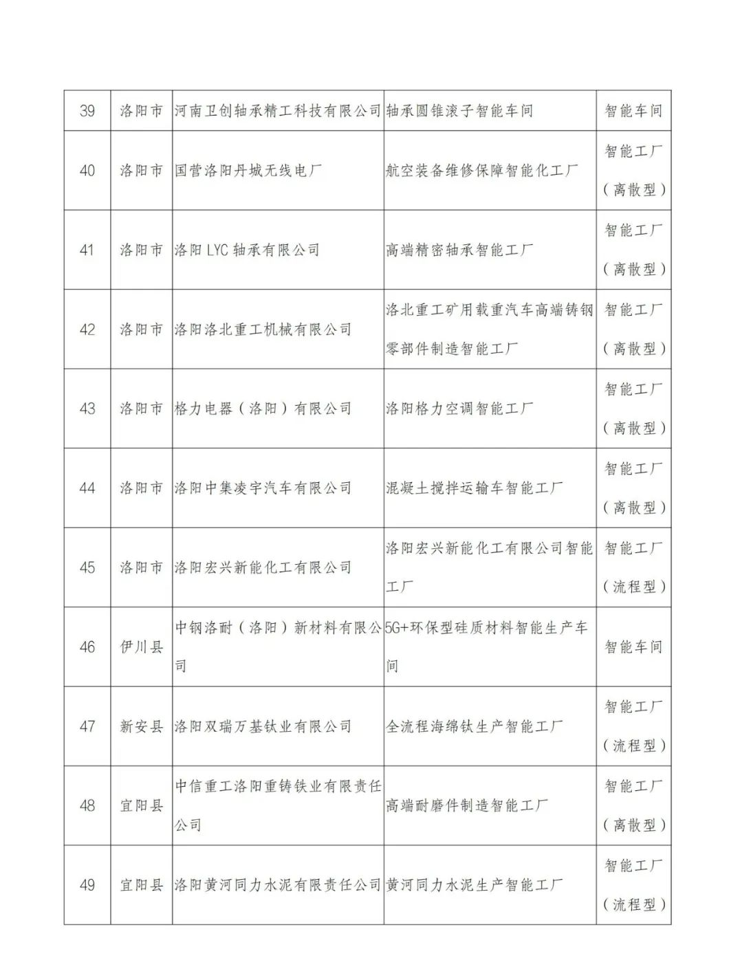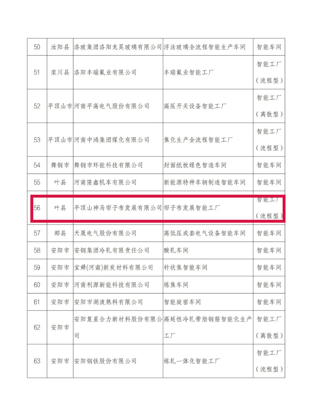 附件:2022年河南省智能车间智能工厂拟确定名单