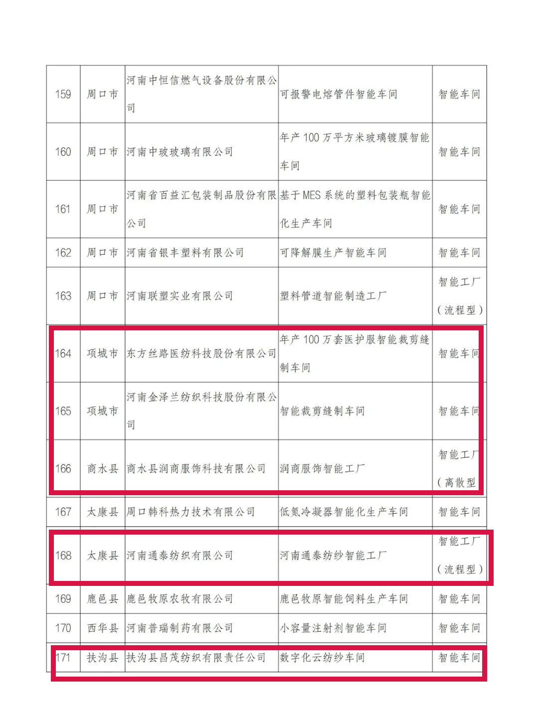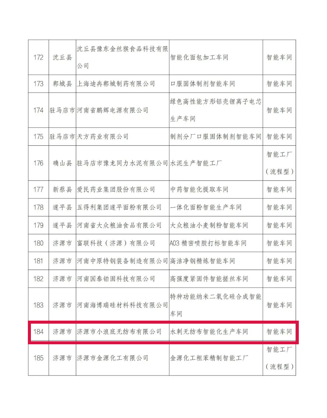 根据《河南省工业和信息化厅办公室关于开展2022年度河南省智能车间智能工厂申报工作的通知》(豫工信办数字〔2022〕98号)文件精神,经各省辖市、济源示范区、各县(市)工业和信息化主管部门初审并推荐,省工业和信息化厅组织专家评审,拟确定东方丝路医纺科技股份有限公司申报的“年产100万套医护服智能裁剪缝制车间”等125个车间为2022年省级智能车间、商水县润商服饰科技有限公司申报的“润商服饰智能工厂”等60个工厂为2022年省级智能工厂(详见附件),现将名单予以公示,接受社会监督。如有异议,请以书面形式向省工业和信息化厅反映。