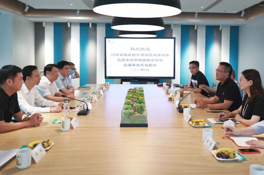 在张家港市国泰华盛实业有限公司,汪明君一行先后参观了国泰华盛实业有限公司的纺织和服装生产样品间,详细了解该公司在服装纺织批发、零售贸易和进出口方面的经验做法,在河南省服装协会常务副会长张勋的见证下,双方就进一步增进了解、加强合作进行了深入坦诚的沟通交流,就到息发展、投资兴业进行了深入洽谈。