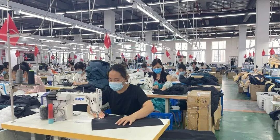 走进依服宝生产车间,记者看到各个制衣流水生产线马力全开,缝纫机“嗒嗒嗒”的运作声此起彼伏,工人们有的在裁剪、有的在缝制、有的在检验,一派紧张有序的工作场面。