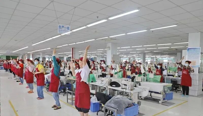 近日,在圣新源纺织品有限公司,随着欢快的音乐,员工们正整齐地跳着活动操。