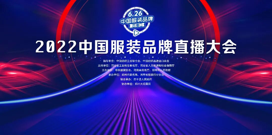 由中国服装协会、河南省商务厅、郑州市人民政府主办,郑州市商务局、河南省服装行业协会、西平县人民政府联合承办的第三届“626中国服装品牌直播大会”即将开启。行业大伽齐聚首,共同预祝活动圆满成功!