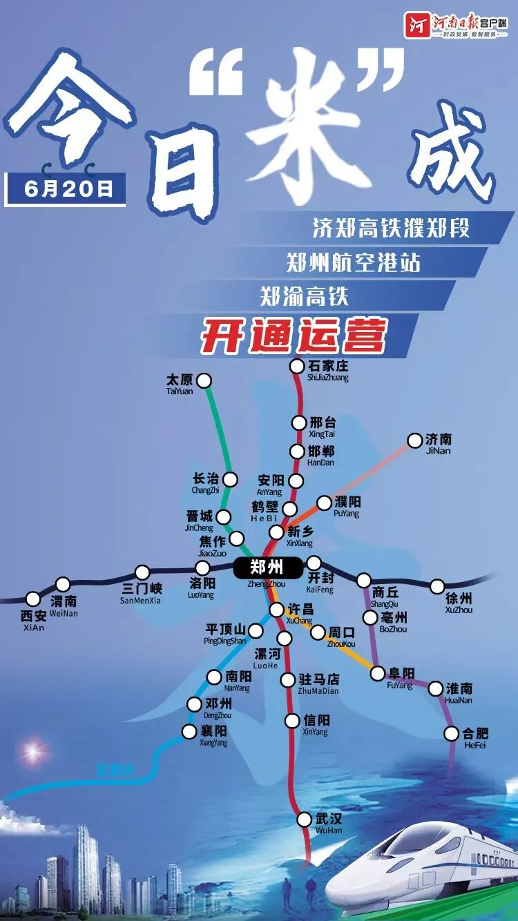 6月20日一个可以载入河南史册的日子济郑高铁濮郑段郑渝高铁郑州航空港站开通运营以...