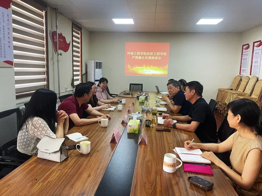 6月18日,河南工程学院纺织工程学院院长刘杰一行到访我会,我会会长李刚热情接待刘杰院长一行,双方就产教融合、校企合作进行交流座谈。