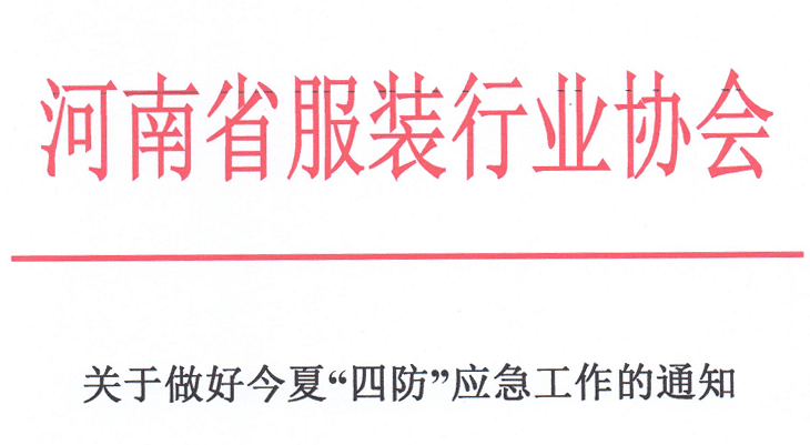各服装企业及相关单位:为认真贯彻习近平总书记关于安全生产和汛期防灾救灾的一系列重...