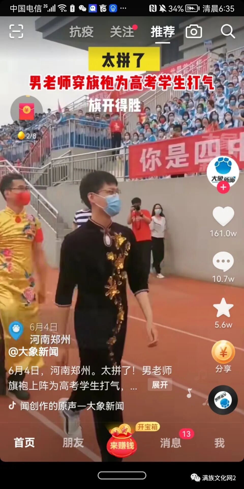 博大精深的中华文化内敛含蓄,往往是以物传情,以字达意。由于“旗”袍之旗,也是旗开得胜的“旗”,因此这些望子成龙,望女成凤的妈妈们,就用穿旗袍的方式,来为考生们助力、加油!郑州一中学男老师也纷纷穿上旗袍为高考学生打气!
