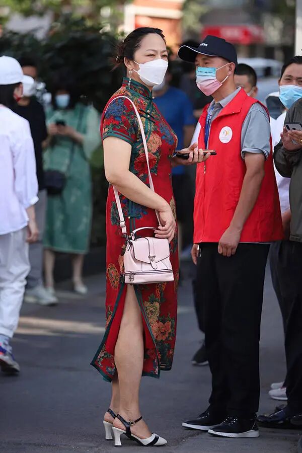 紧张的不仅只有寒窗苦读的学子,还有一直在背后默默支持,付出所有的家长们。考场外的妈妈为给孩子博得一个好彩头,纷纷穿上了寓意“旗开得胜”的旗袍,美成了一道靓丽的风景线。