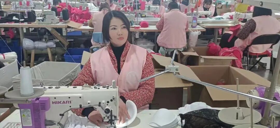 “我叫宁小希,是两个孩子的妈妈,来天派工作7个多月了,在这里上班真好,既能挣钱补贴家用,又能照顾孩子,”说话间,一件内衣在宁小希熟练地操作下已经成型。