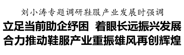 近日,温州市委书记刘小涛带队调研鞋服两大产业发展,主持召开专题座谈会。他强调,鞋服产业是永远的朝阳产业,要坚定发展信心,既立足当前助企纾困,政企携手克难攻坚,又着眼长远振兴发展,加速产业转型发展,以实实在在的行动和举措,合力推动温州鞋服产业重振雄风、再创辉煌。