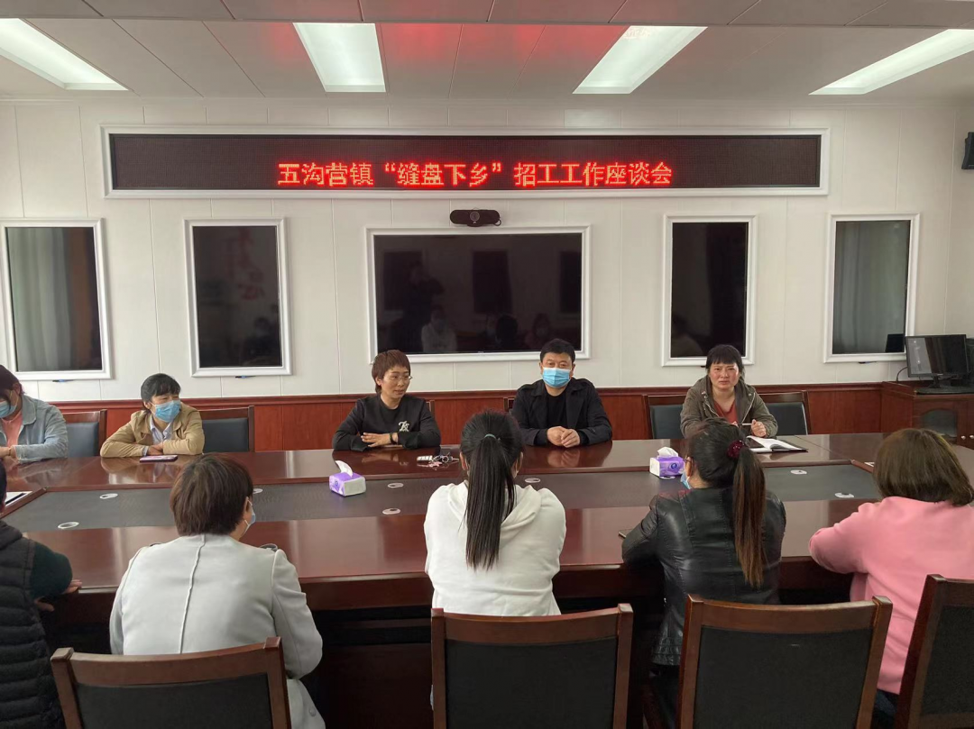 五沟营镇先后召开“缝盘下乡”招工工作推进会和座谈会,持续聚焦跟进,掌握用工动态,了解工人需求,对“缝盘点”招工管理和工人日常工作中出现的问题及时解决。