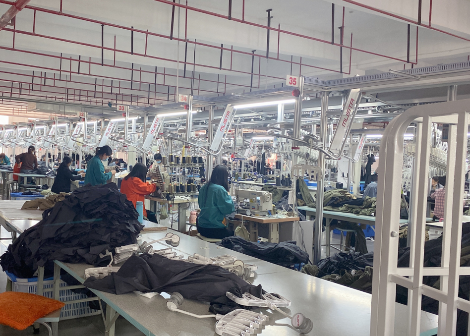 5月8日上午,信阳市淮滨县产业集聚区淮滨苏美达制衣车间内,一排排制衣机器正有序运...