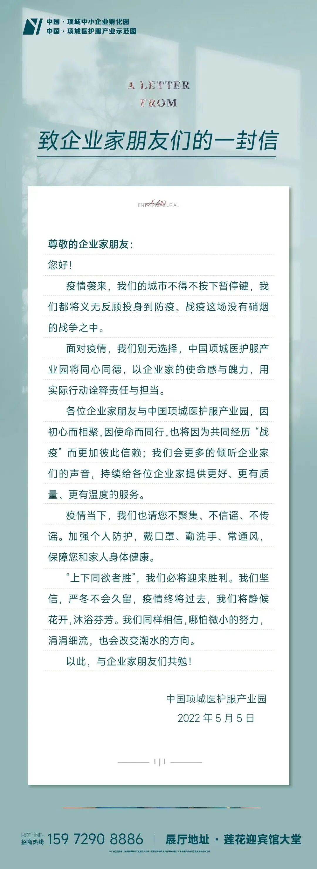 中国·项城医护服产业示范园 致企业家朋友们的一封信