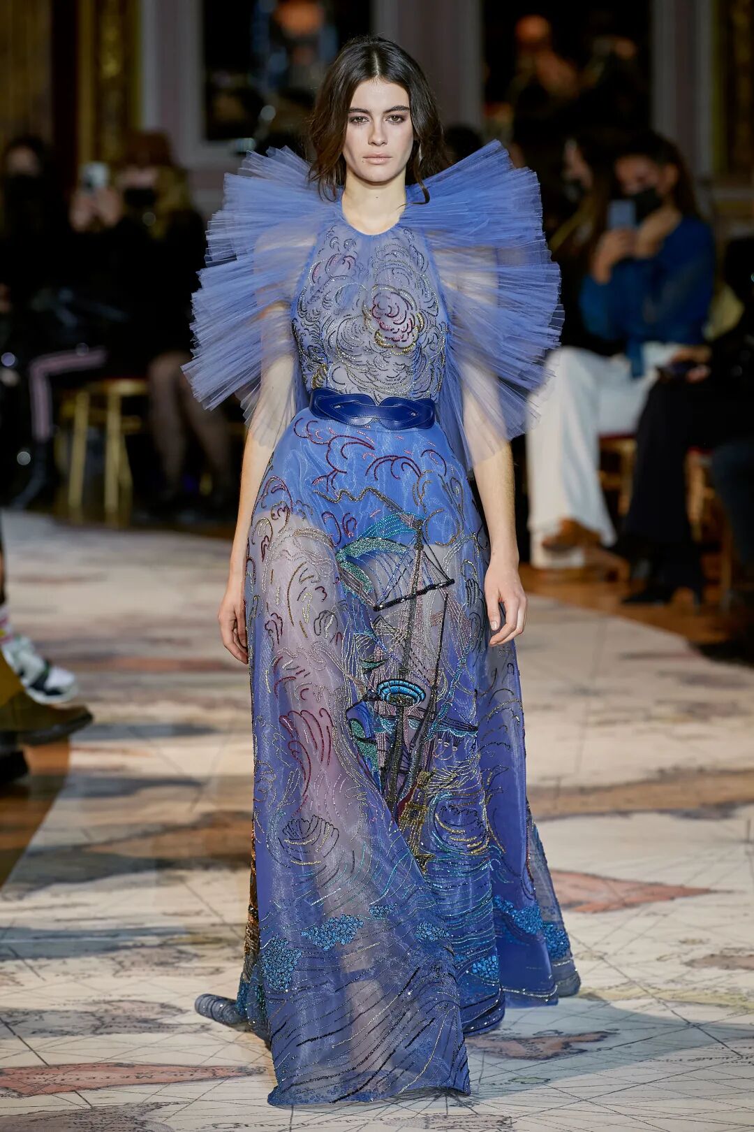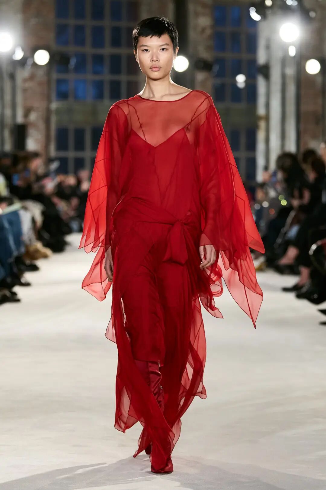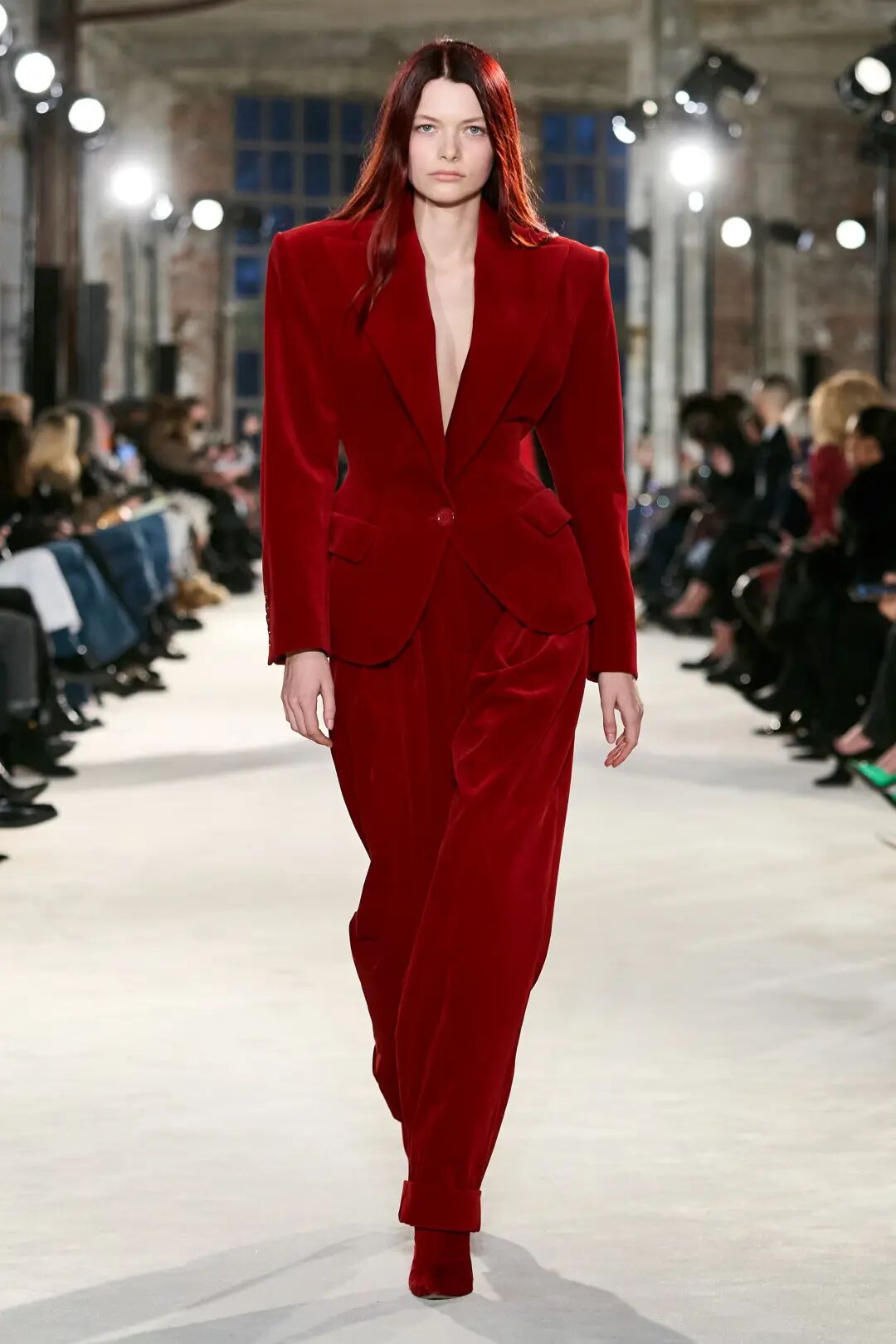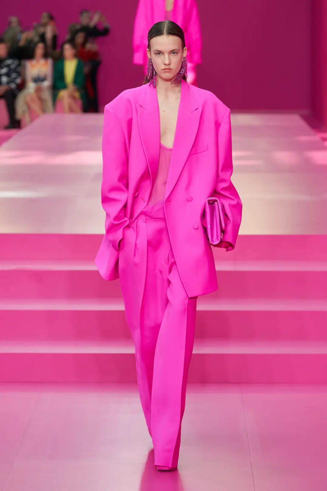 但是作为高饱和度的色彩,因为视觉冲击力强,不建议采用普通服装的三色定律,反而是最多两色点缀,甚至是全身一种色彩,提升高贵度和知性气质。