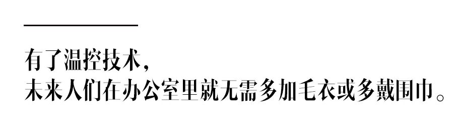 这是一款能够适应人体体温的商务休闲毛衣,其面料采用的聚合物遇热时会发生反应。温度降低时,材料中的空隙变小,从而将热量留在衣内;反之空隙则会变大,使毛衣变得更加透气。