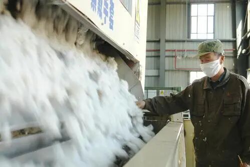 棉花加工环节,为了得到更优质的原料,去除天然棉花中的杂质,他们要整天带着厚厚的口罩,还要时刻做好安全措施。