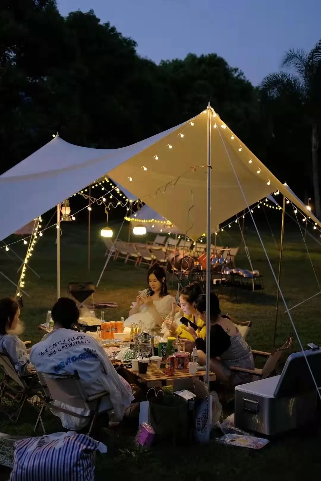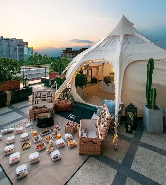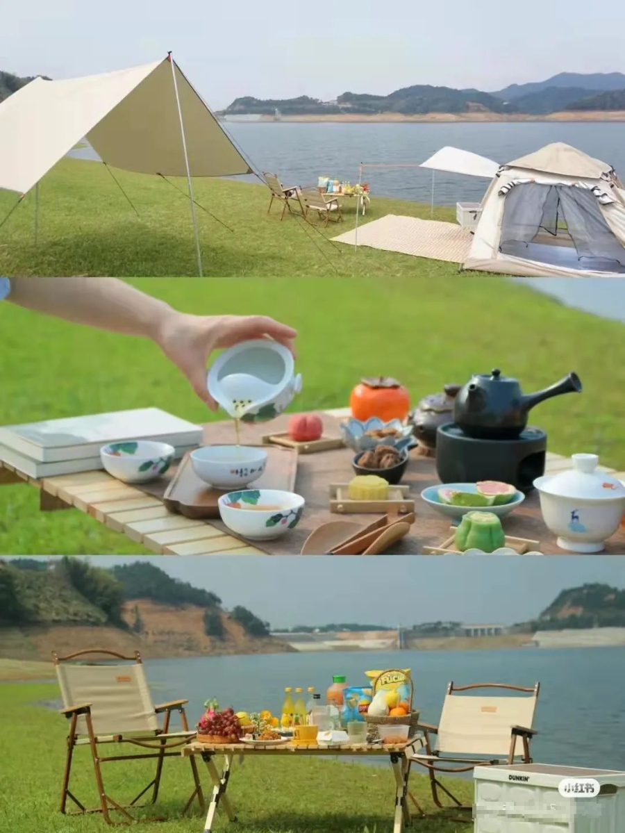 与以往带一堆零食,随便找地儿铺上野餐垫不同,精致露营成为了当下年轻人间最大的“风口”。
