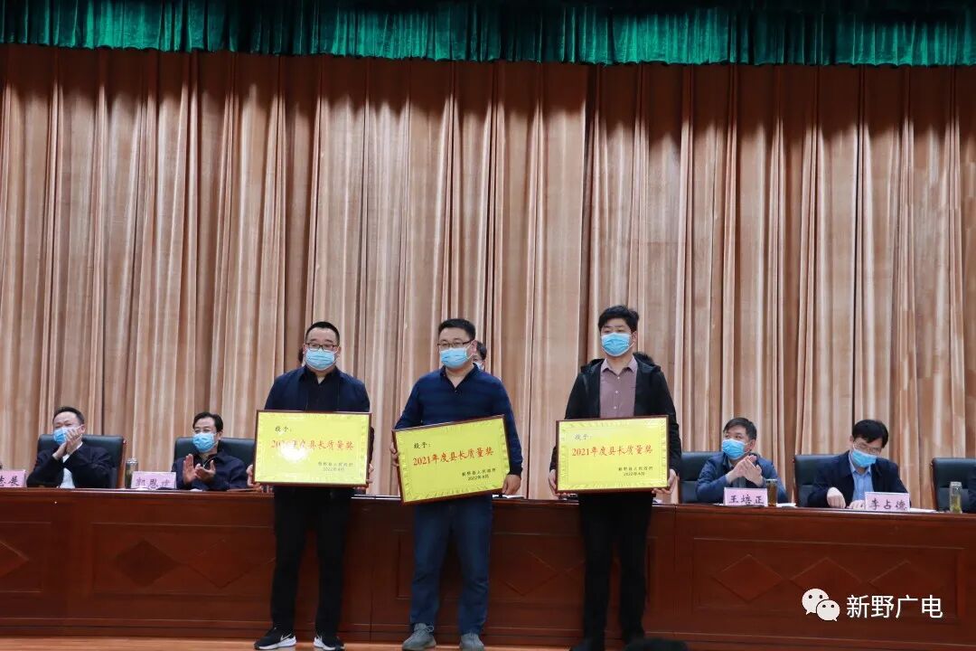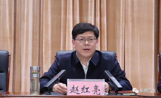 新野县委书记赵红亮讲话。县长李文鹏主持。孙国徽、王培正、郭恩建、李占德、满志展、姜涛、程世平、黄慧、李爽、谢浩、王亚林、孔令东在主席台就坐。