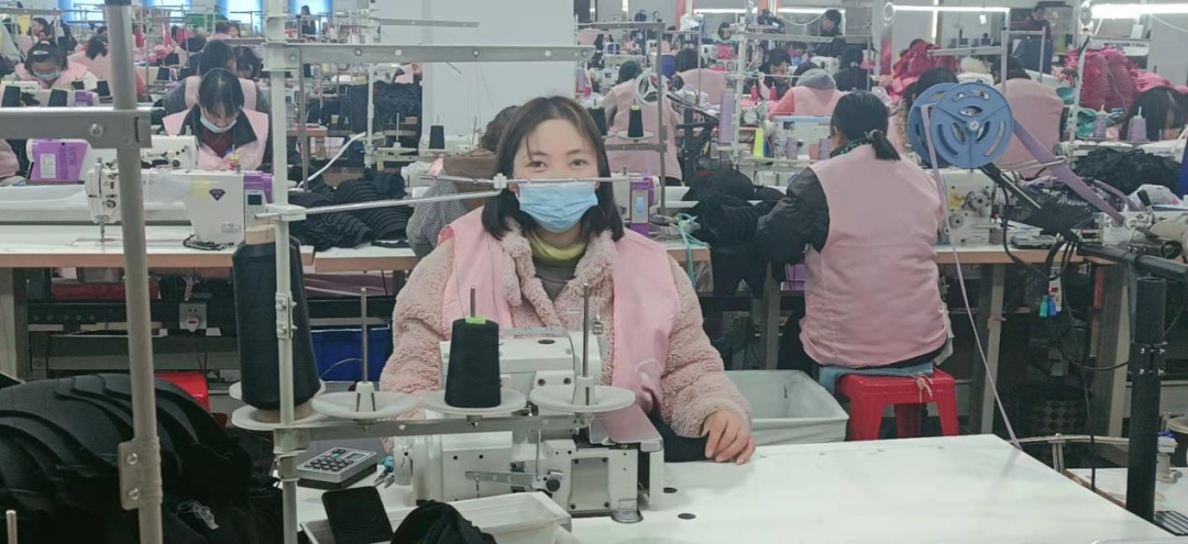 我叫庞友友,家在叶县邓李乡何马村三组,家里有一儿一女,公公婆婆一共六口人,现在儿子女儿都还小。我之前在外地从事服装行业,有做服装的经验,也当过组长,对服装制作的各种技能和流程都比较熟悉,经朋友介绍,我进入了“家门口”的天派服饰,成为了一名车工。