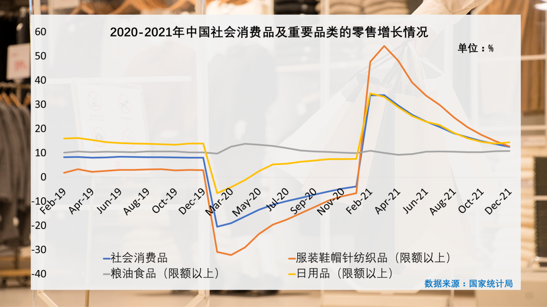 我国是全球受新冠疫情影响最早的国家,同时也是从疫情中恢复发展最快的国家之一。2020年初国内疫情爆发,随之而来停工停学、商业关闭、居家隔离等严格防疫措施使国内零售市场出现大幅度下滑。2020年一季度,国内社会消费品同比下降近20%,仅粮油食品类销售出现正增长,服装鞋帽针纺织品、日用品等均出现不同程度的销售下滑,其中服装类产品下滑幅度最大。