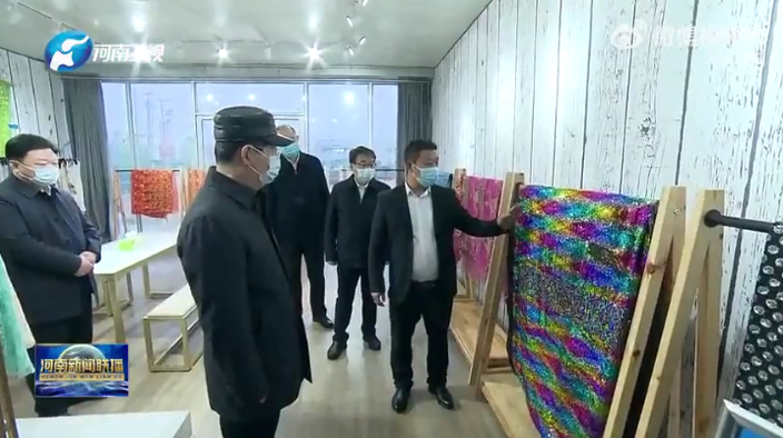 2月16日,河南省省委书记楼阳生实地调研营辉公司的销售展厅,详细了解了产品设计、工艺特点、销售方式等,指出要用好我省纺织业的产业基础、人力资源等优势,做好延链补链强链文章,把准个性化市场消费趋势,创新设计、做精工艺、做优品牌,推动产品向产业链价值链中高端迈进。