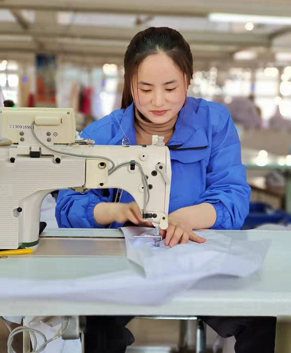 我一直认为,我们现在的美好生活来之不易,党和政府是我们的坚强后盾,所以,我一直积极主动融入到党建工作中,并带领班组的姐妹一起参加党建学习,大家互促互进,2021年,我还被公司党支部评选为“党建先进个人”“年度优秀员工”,这极大地提升了我的职业荣誉感,我决定一直在服装行业干下去,当好部门的带头人。