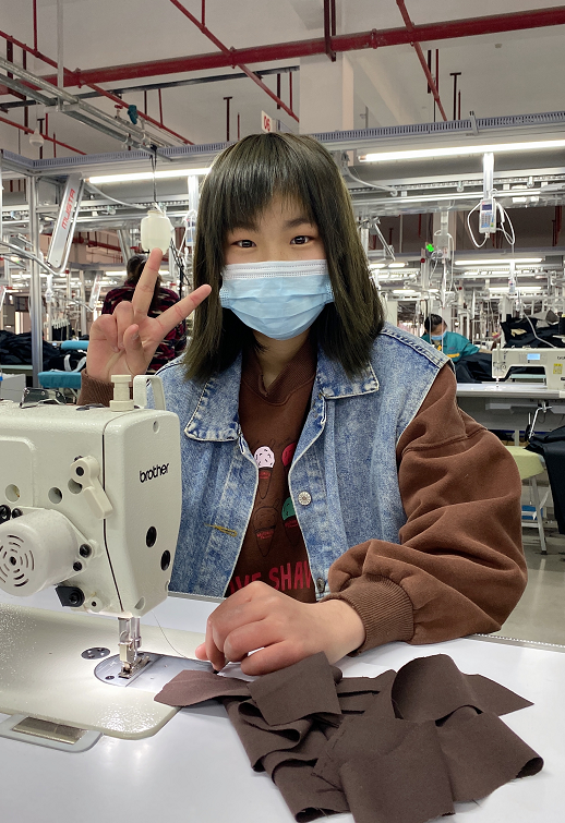 “我的家就在淮滨毛庄,家里有父母、姐姐和哥哥,姐姐婚后定居在安徽,哥哥一直在杭州发展,父母想让我留在他们身边,我毕业后一直没有找到稳定的工作。年前刷抖音的时候,不经意间刷到了咱晨瑞家居的生产车间,我觉得环境好、离家近、收入也高,和父母商量后便加入了晨瑞家居!”性格开朗的张华玲一边说一边干,“我刚来的时候做的是锁边工作,现在转到了车工组,从校园生活转变到现在这种工作状态,刚开始不太习惯,现在已经完全适应了这种工作节奏,工厂的工作环境好,生活氛围也很好,同事们都很和睦。我们一个宿舍有好几个同龄的女孩子,大家有共同语言,下班了可以一起吃饭回宿舍,谈心聊天,像上学时候一样。”刚参加工作3个月的她已经完全适应了车间的工作与生活。