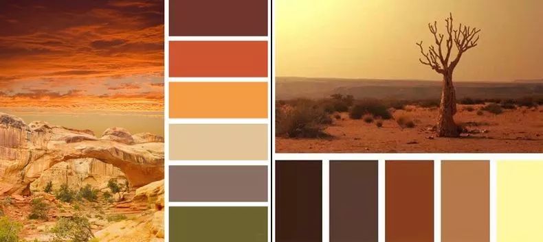我想肯定有很多人会以为大地色就是卡其、驼和棕,但其实并不是,它是微光和尘土的颜色,也是河川草木的颜色。所以,它能温暖璀璨活力四射,也可以柔和沉静与世无争。从大范围来说大地色系指的就是所有从自然界延伸出的色彩。比如可以举个例子,像是树干的木头色,泥土的棕黄色,甚至包括你没想到的草地的鲜绿色都能算进去。但是如果从小范围来看,则是指低彩度的中间色调,像是棕色,土黄色,卡其色,驼色,橄榄绿色,鹅黄色,砖红色等等。也就是指不会过度鲜艳明亮,不会让人产生激动情绪的,看上去能感受到温润沉稳的舒心色彩。这也可以解释:为什么它是除黑白灰之外最万能的颜色?红橙黄绿青蓝紫,无一不与它紧密相融。