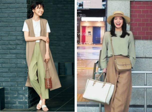 大地色+绿色,是一组现代时髦又有格调的配色。两者搭配一起不仅视觉清新治愈,也特别柔和百搭。