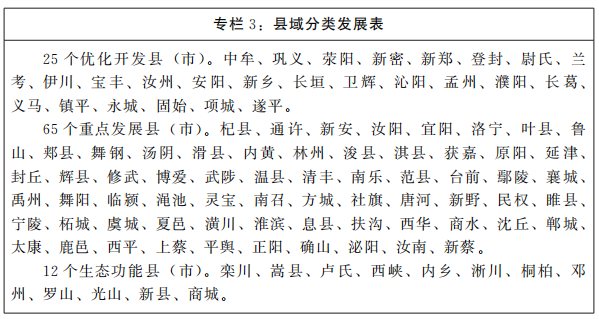 河南将建25个优化开发县、65个重点发展县、12个生态功能县