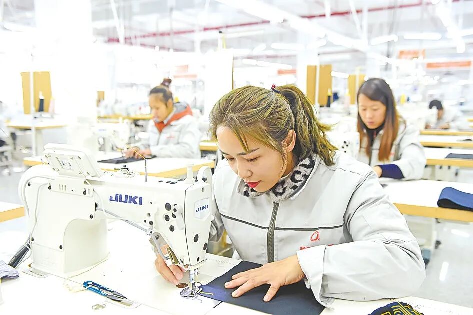一排排整齐的机器马力全开,工人们赶制订单如火如荼。2022年2月7日,在河南省驻...