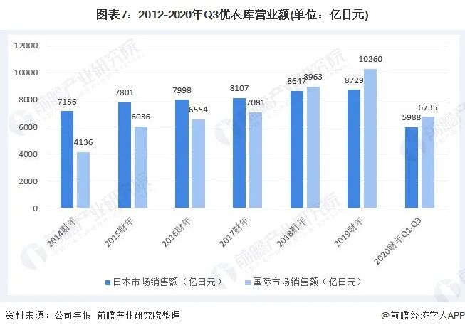 2014-2019财年,优衣库母公司迅销集团销售额呈持续增长趋势。2019财年,迅销集团实现销售额2.29万亿日元,同比增长7.51%。受疫情影响,截至5月31日,迅销集团2020财年的前九个月,综合营业收入为1.5449万亿日元,同比下降了15.2%,营业利润下降了46.6%,为1323亿日元。