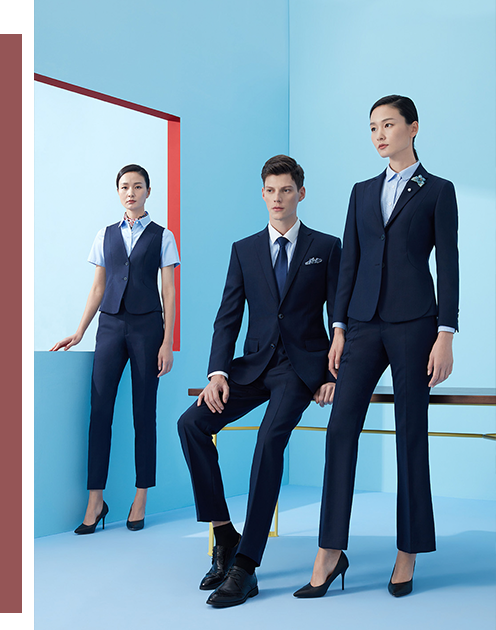 质量上乘、设计新颖的职业装离不开优质的面辅料支撑,面料不仅可以赋予职业装一定的挺括度和设计感,而且直接左右着职业装穿着的舒适度。纺织产业上下游企业企业要针对职业装的特性实现面料创新、产业链创新与产教融合,以功能性面料为职业装设计打好“地基”。