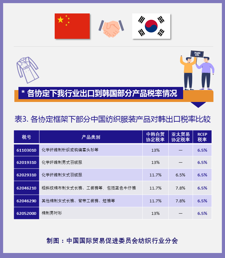 RCEP生效后,日本最终将在15年内对绝大多数中国纺织服装产品实现零关税。同时,RCEP与已经实施的中国一东盟、中韩、中澳等自贸协定共同组成了更高水平、更具协同效应的自贸协定网络,部分产品关税将更优,有利于区域内多边贸易的效率提升,扩大我行业整体出口规模。