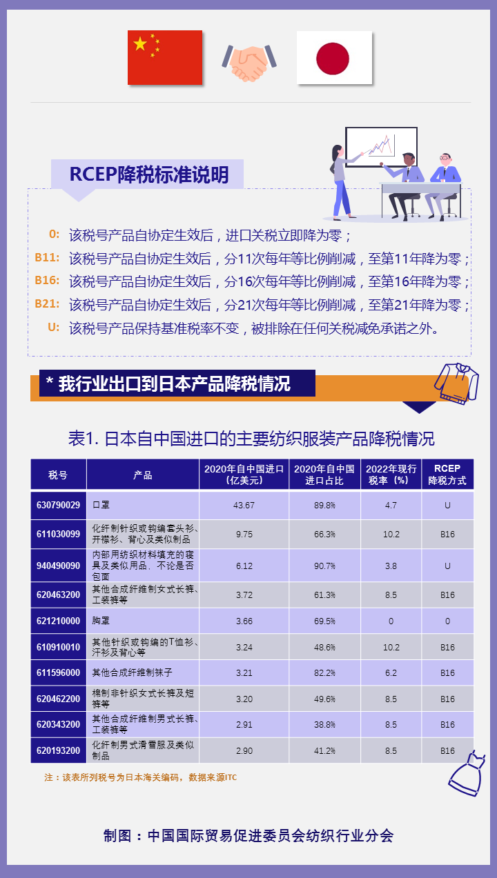 协定生效后,关税逐年会降低直到降为零,而且涵盖的产品范围很广,99.3%的纺织类产品都涵盖了,对我们中国对日本的出口参与公平贸易竞争优势就显现出来了。我纺织行业对日出口规模有望在200亿美元基础上进一步提高。