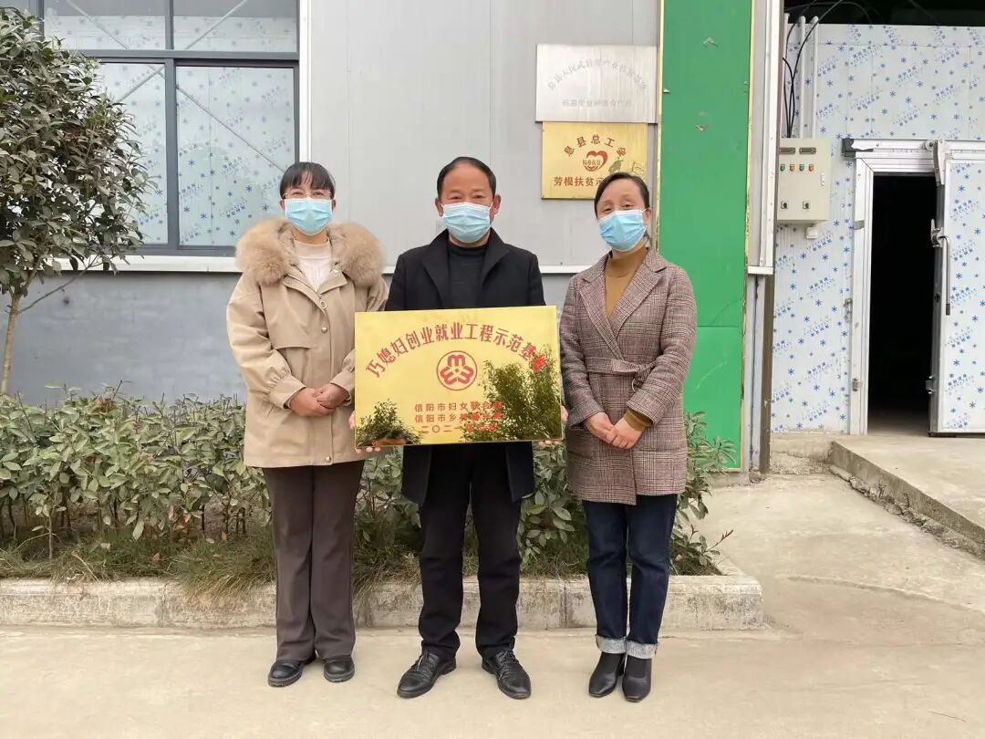乡村振兴,巾帼建功。为深入推进“巧媳妇”工程助力巩固脱贫攻坚成果与乡村振兴有效衔接,引领广大农村妇女就业创业,助力乡村振兴。近日,息县妇联通过上门走访形式为获得2021年度信阳市巧媳妇创业就业工程示范基地、信阳市巧媳妇荣誉称号的单位及个人授牌、颁发证书。