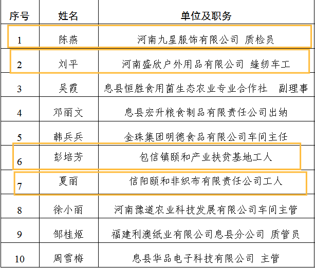 巧媳妇名单(10名)