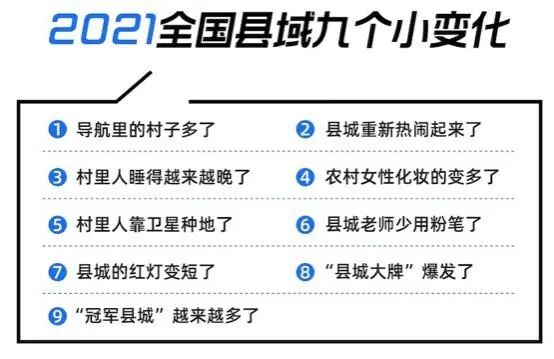 12月10日,中国社会科学院大学数字中国研究院联合蚂蚁集团研究院发布“2021数字生态县域年终观察报告”,将其过去一年赴山西、贵州、江西、云南、西藏等地的十几个县域的走访调研,总结出九个小变化。