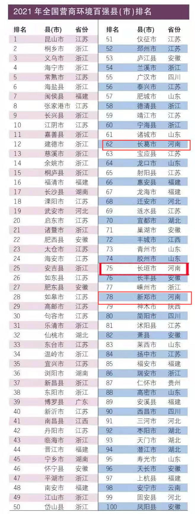 近日,“中国社会科学院财经战略研究院重大成果发布会:《中国城市品牌影响力报告(2021)》”在北京举行。会上发布了2021全国营商环境百强县名单,河南有3个市县上榜,长垣市榜上有名!