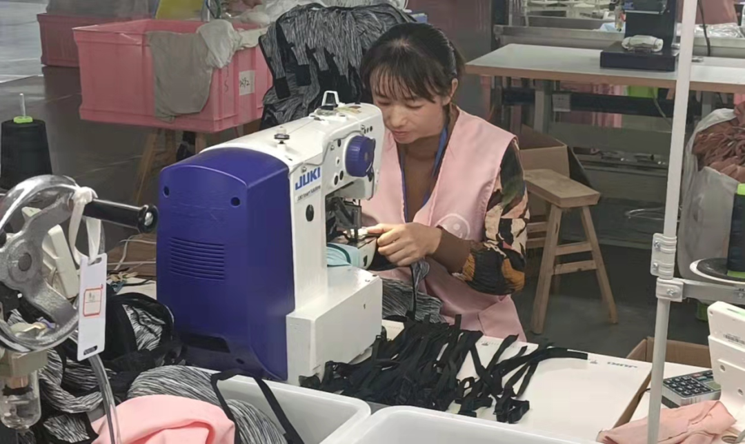 在河南天派服饰有限公司的生产车间里,200多台缝纫机“哒哒哒”的声音此起彼伏,34岁的刘明丽正在缝纫机前忙碌着,伴随着缝纫机的“哒哒”声,刘明丽飞针走线,一款漂亮又舒适的内衣轮廓就展现出来了。
