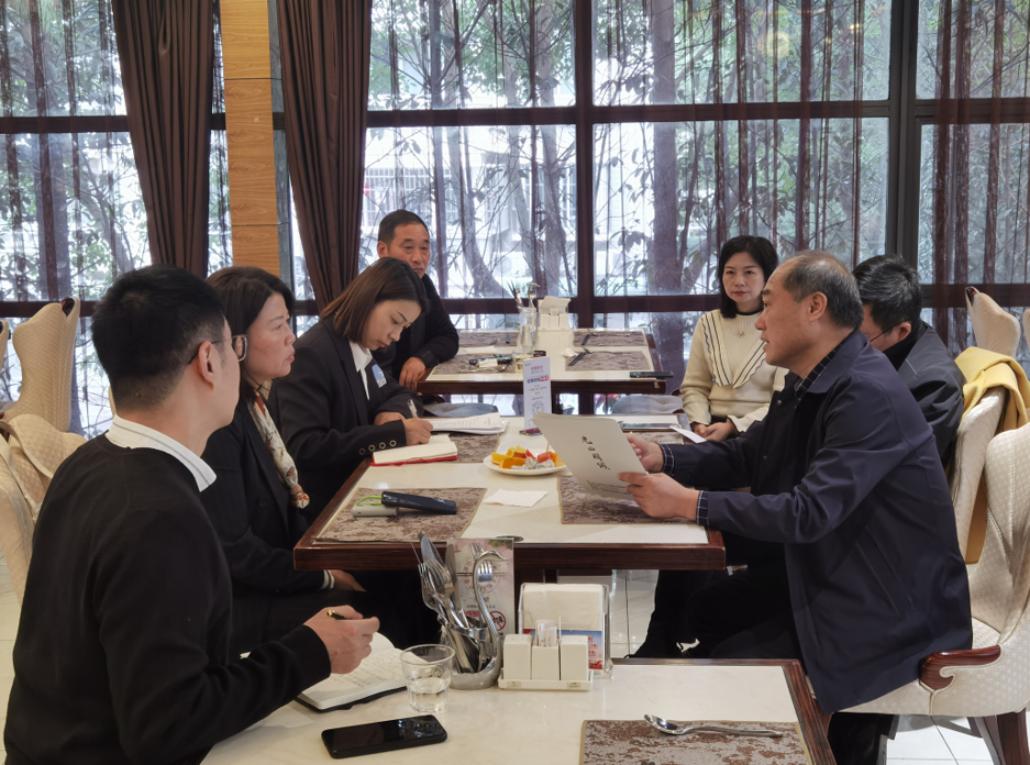 国泰华盛公司董事长金总祥细介绍了公司发展历史、发展现状和后期规划,并就国泰华盛公司落地光山服装项目进行深入交流。