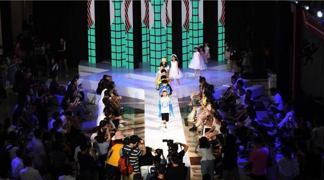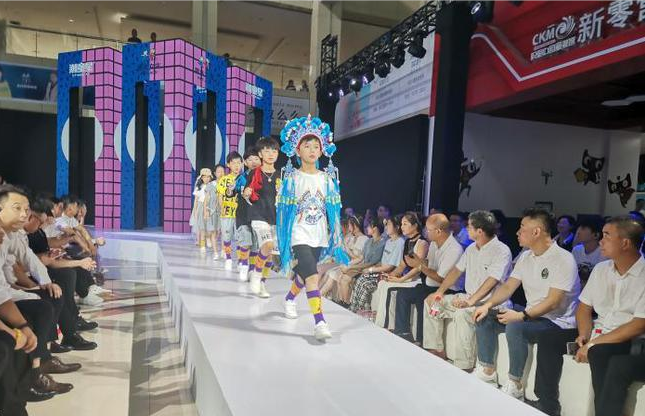 7月13日,走进织里中国童装城,一场童装T台走秀正在进行中,100余名儿童身着校服、表演服等类别衣服,全面展示了本土企业设计的童装。