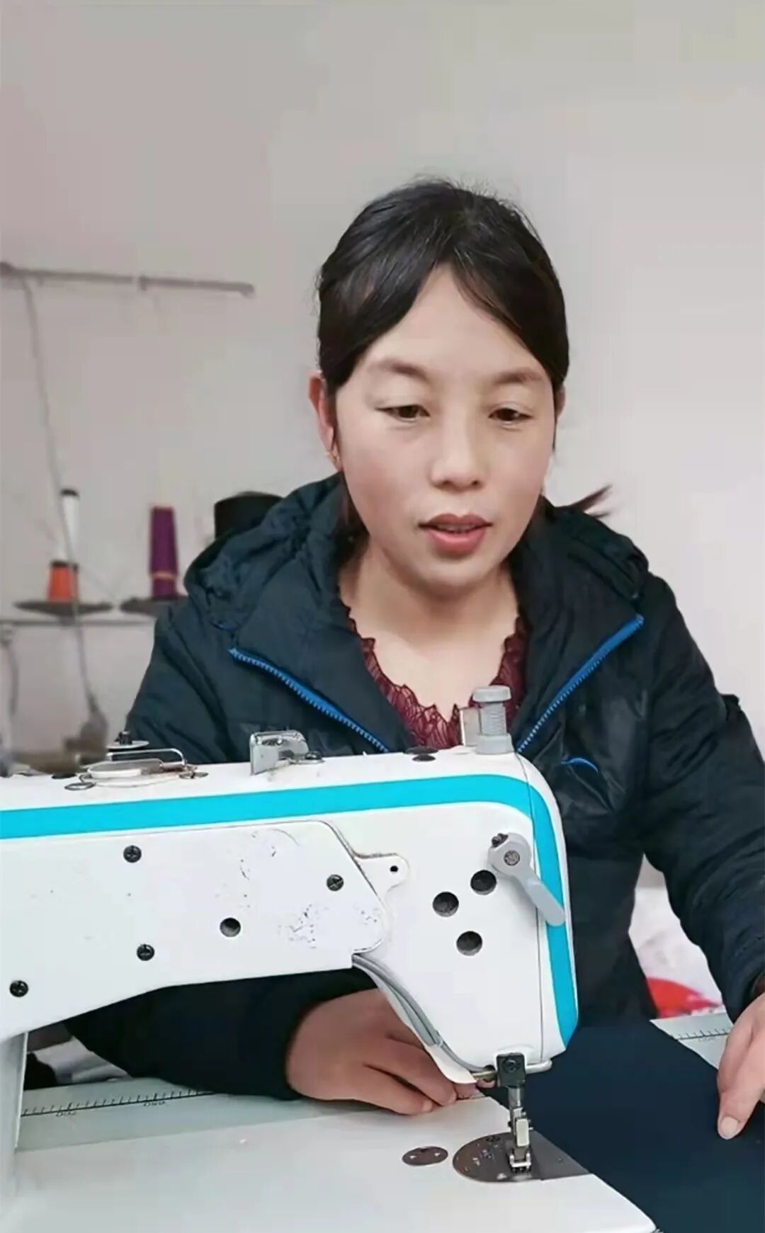 这一干就是八年,八年来,我积累了技术经验和管理经验,现在我在自己家开设了宇达分厂,招聘附近的邻里乡亲来工作,大家每天不出远门就能挣钱,不耽误接送学生、照顾父母、实现了赚钱顾家两不误,平均工资可达到三千多,比去外地打工幸福指数高太多了。我现在很知足,也越来越热爱服装行业,非常感谢政府这些年在家乡发展服装产业,感谢宇达服饰给我机会让我接触服装、学习服装、热爱服装!