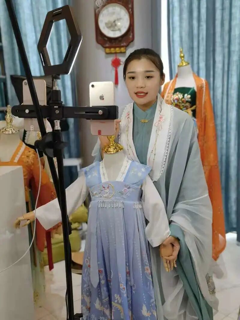 县长带货直播的效果令人惊喜,直播间仅半小时内,参与活动的商户就售出3000余件汉服。