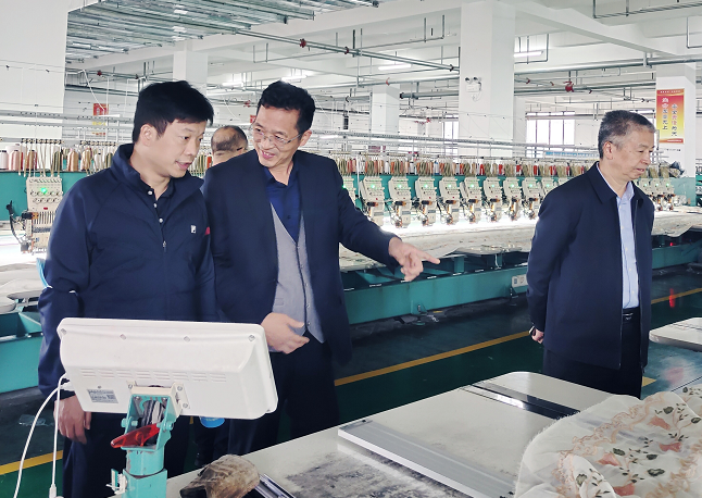 米高杰副会长、淮滨县领导与罗建军董事长一行举行座谈,双方就淮滨的县情区位、资源生态、优惠政策、营商环境、人力资源、投资成本等进行了深入的交流与沟通。随后双方一起到临港服装城项目工地、淮滨港、淮绣园、嘉兴纺织产业园、染整产业园项目工地进行实地考察,详细了解了淮滨县纺织服装的产业基础,未来发展。