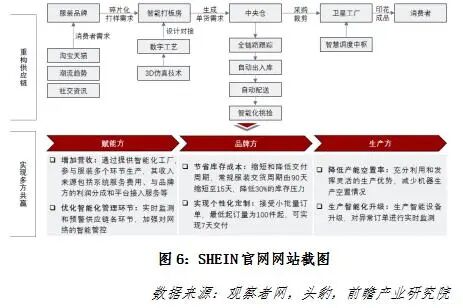 例如SHEIN,国内跨境电商品牌,目标市场定于海外,积极开拓市场,获多轮融资,2012年以来营收迎来爆发式增长,发展为全国最大的快时尚跨境电商公司。SHEIN地处服饰产业及国际物流发展相对成熟的南京,在制造端持续进行数字化改造,与各家合作工厂持续配合,逐步形成以SHEIN为核心的智能生产集群。所有代工厂和供应商均可使用MES工艺管理系统,对每个订单的各个环节实现实时和可视化的跟踪,从而控制生产效率,在强大的数字供应链生态下,SHEIN供应商的交货速度也远快于行业标准。